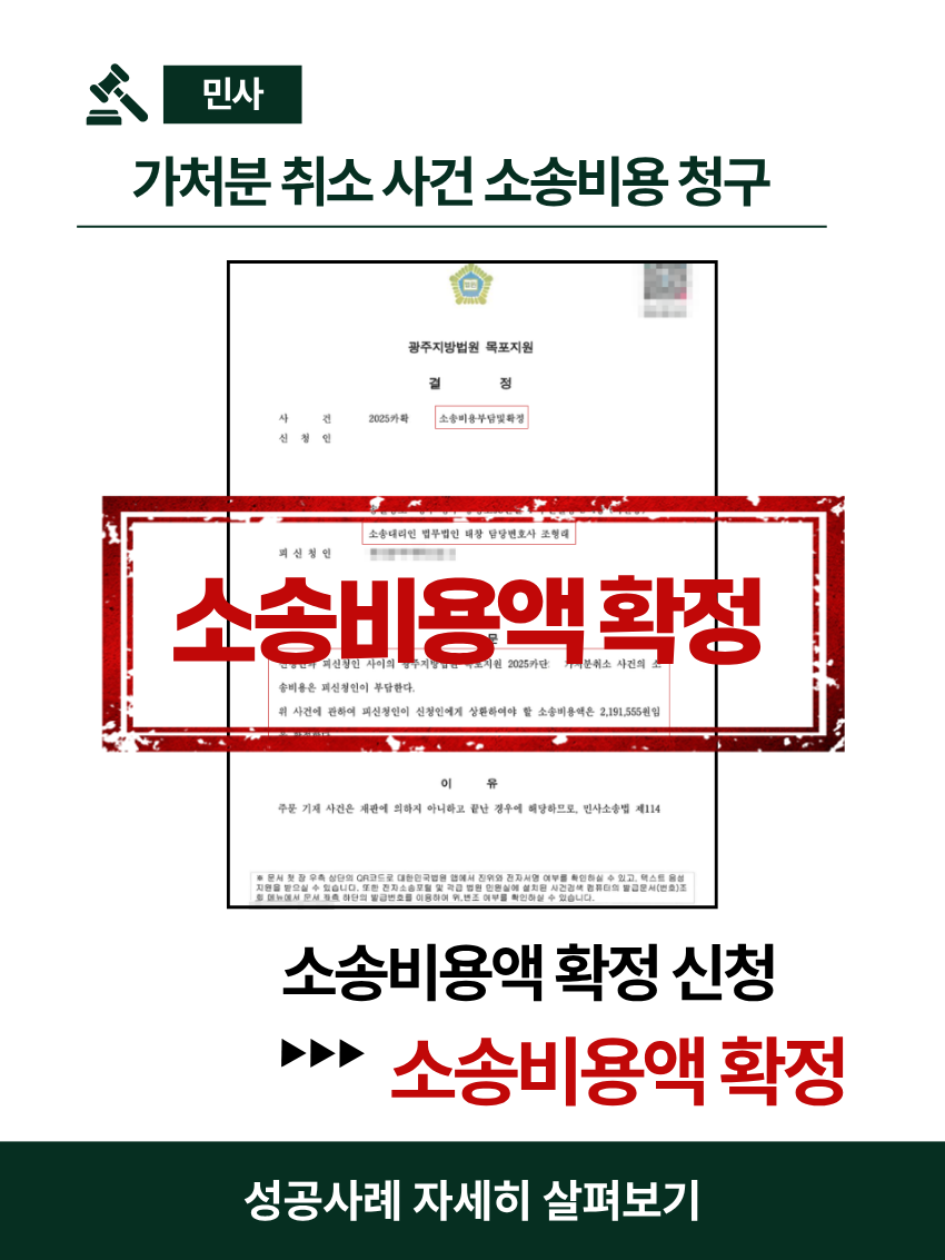 의뢰인은 신청인은 피신청인이 제기한 부당한 가처분행위에 대하여 법무법인 태창의 광주변호사인 조형래 형사전문변호사이자 민사전문변호사의 도움으로 가처분취소신청을 하여 승소하였으며, 승소 후 소송으로 인하여 발생한 변호사 비용을 포함한 소송비용을 상대방으로부터 집행하기 위하여 다시 민사소송에 특화된 조형래 광주변호사의 도움을 받게 되었습니다.